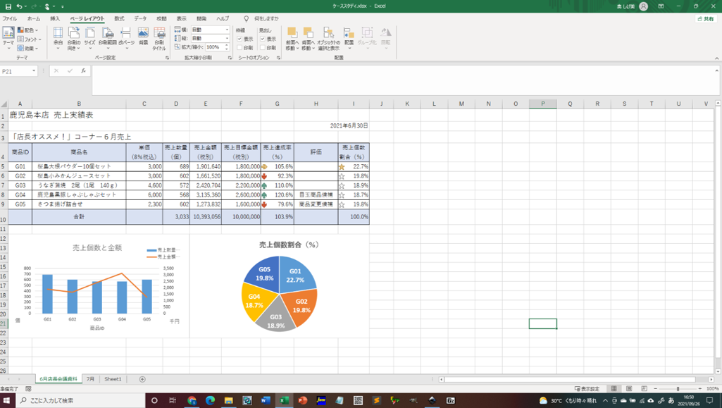 黄色塗潰しセルへ入力するだけで自動で集計される様、テーブルと関数を使用している。また曜日ごとの集計や指定された日のみ集計にも対応している。